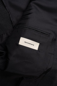 The Patch Pocket Blazer has a relaxed fit with half canvas construction and a light shoulder construction. Featuring three patch pockets, internal chest pocket, notch lapel and half lining. Cut from a worsted deadstock wool with a dry hand feel and subtle two-toned weave in dark grey. - Relaxed Fit - Fabric and Garment Made in Portugal - Deadstock Fabric - 100% Wool - Black Urea Resin Buttons - Dry Clean Only