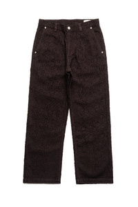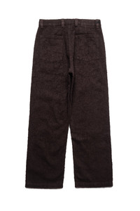 The Punch Out Jeans has a relaxed straight fit with a mid-rise. Featuring side pockets, rear patch pockets, flower rivets, metal button closure and YKK zip fly. Cut from 100% organic cotton denim in deep brown, with all-over distressed pattern made with a laser. - Relaxed Straight Fit - Fabric and Garment Made in Portugal - 100% Organic Cotton - Garment Washed and Preshrunk - Metal Buttons - YKK Zipper - Machine Wash Cold