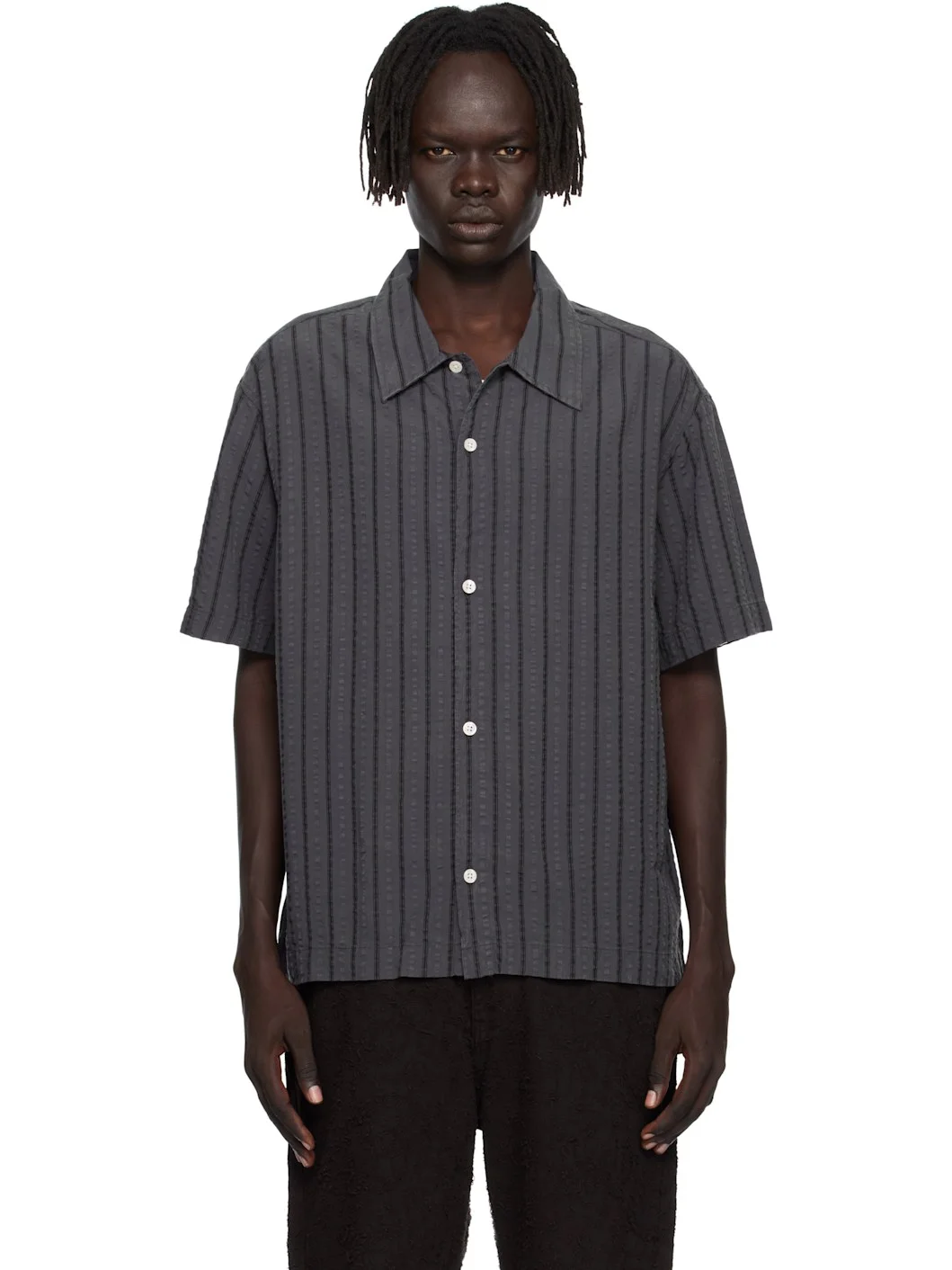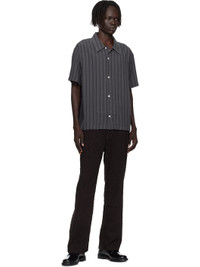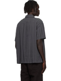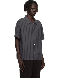 Tencel seersucker shirt. · Stripes throughout · Spread collar · Button closure · Box pleat at back yoke Available exclusively at SSENSE. Supplier color: Dark grey stripe 100% tencel. Made in Portugal 252505M192001