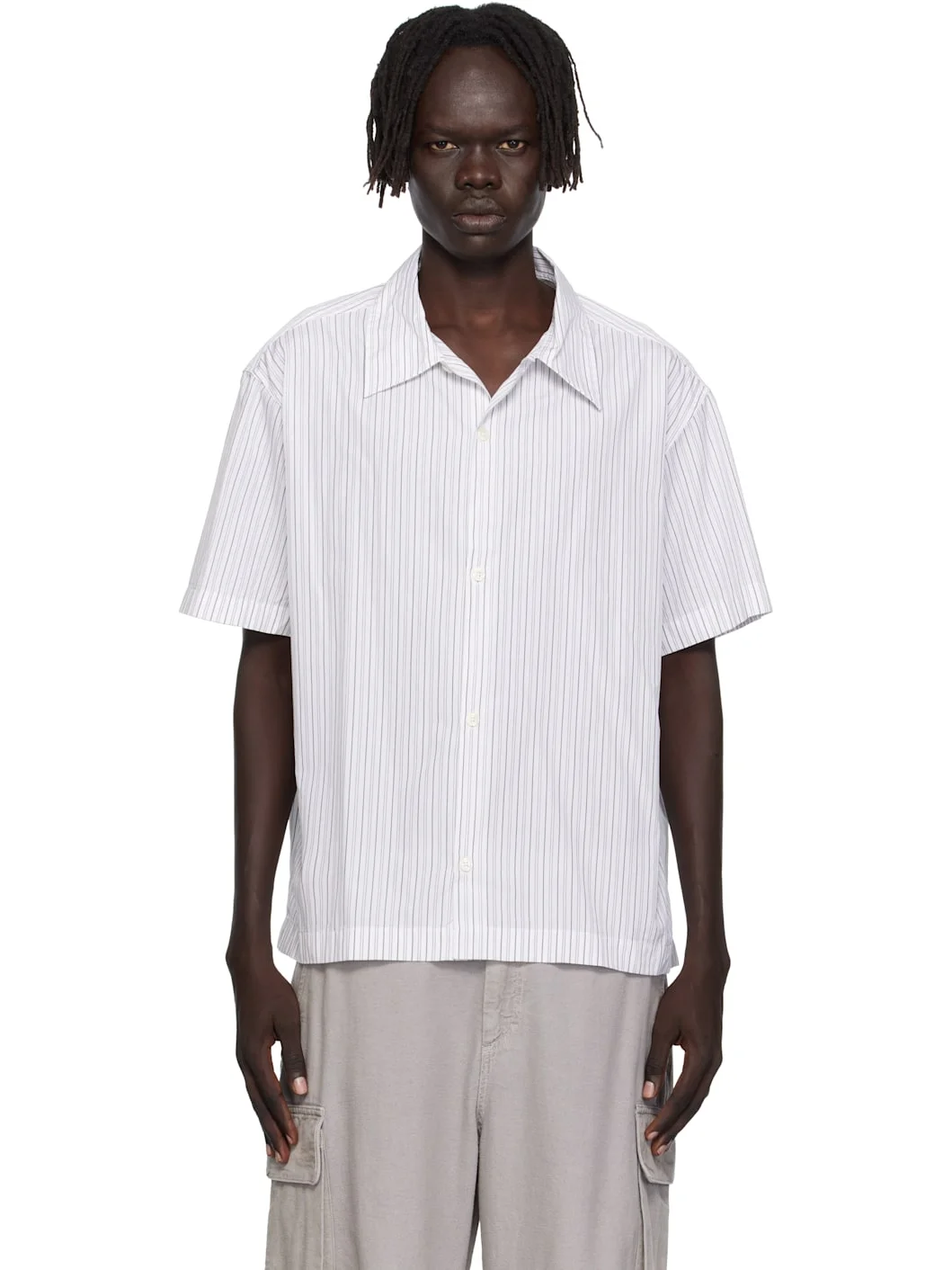 Cotton poplin shirt. · Stripes throughout · Spread collar · Button closure · Box pleat at back yoke Available exclusively at SSENSE. Supplier color: White regent stripe 100% cotton. Made in Portugal 252505M192002