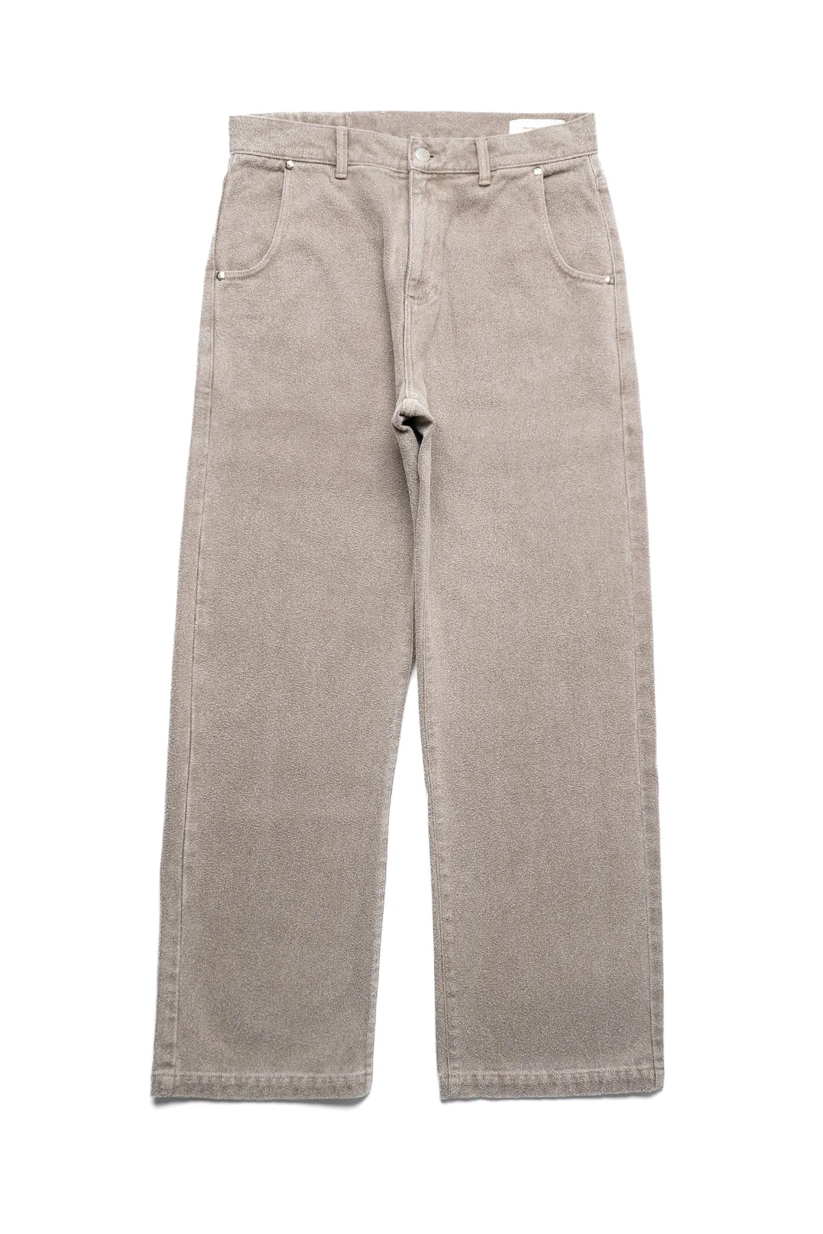 The Straight Cut Jeans has a relaxed straight fit with a mid-rise. Featuring side pockets, rear patch pockets, flower rivets, metal button closure and YKK zip fly. Cut from a soft mineral dye washed organic cotton denim with a brushed surface in a light brown. - Fabric and Garment made in Portugal - 100% Organic Cotton - Garment Washed and Preshrunk - Metal Buttons - YKK Zipper - Flower Rivets - Machine Wash Cold