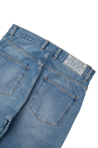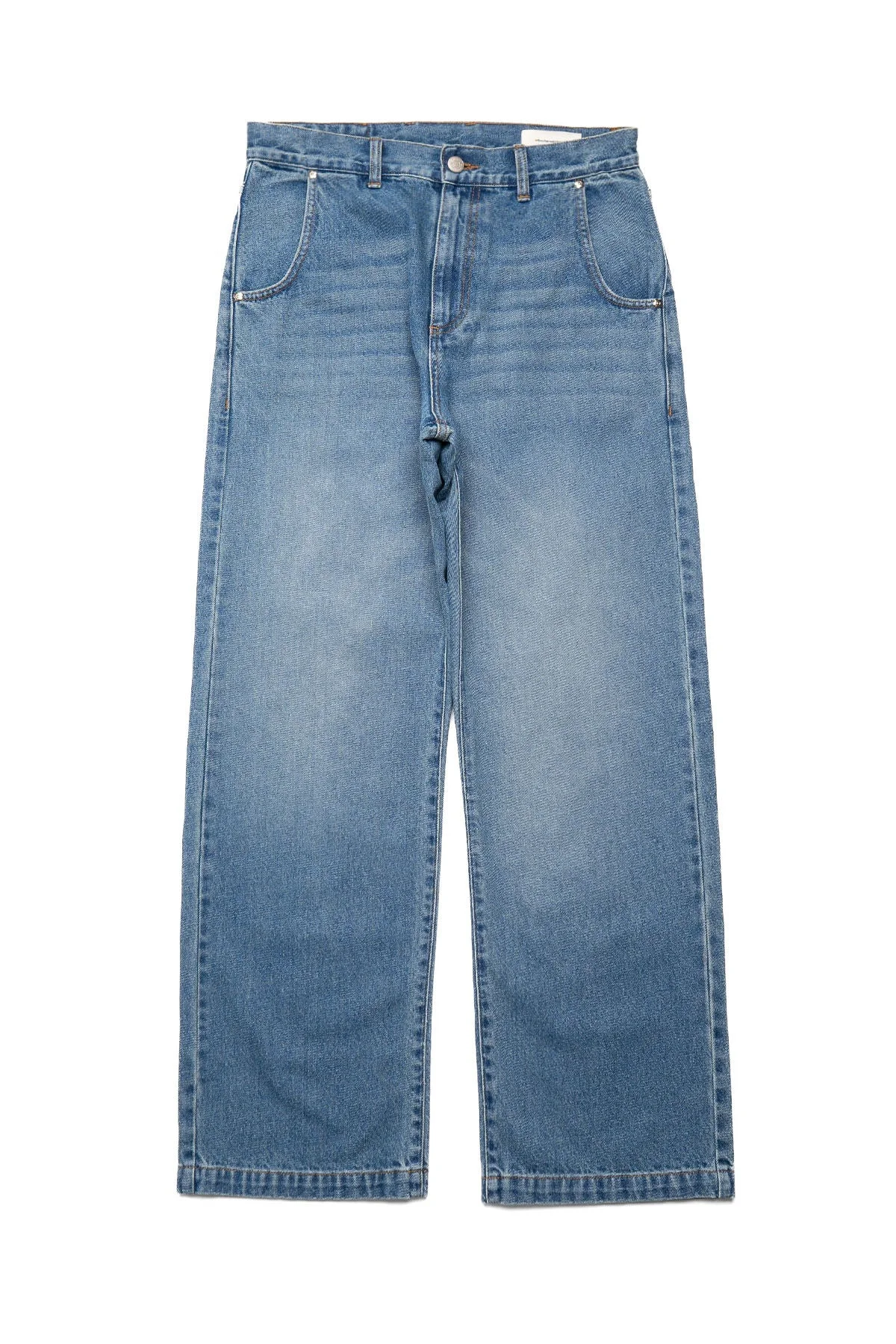 The Straight Cut Jeans have a relaxed straight fit with a mid-rise. Made with side pockets, rear patch pockets, metal button closure and YKK zip fly. Cut from a washed organic cotton denim twill, with color made from a cold dye. - Relaxed Straight Fit - 100% Organic Cotton - Garment Washed and preshrunk - YKK Zipper