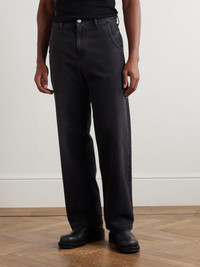 Whether your style evolves or stays the same, a good pair of jeans will always work. This pair from mfpen is cut in a timeless straight-leg profile from organic denim. The faded thighs give them a lived-in character. Size & Fit - Fits true to size. Take your normal size - Relaxed-straight leg, low-crotch style - Mid-weight, non-stretchy denim - Model is shown wearing a S - Model measures: waist size 30, height 6'0"/ 183cm Details & Care - Black organic denim - Button and zip fastening - 100% organic cotton - Machine wash