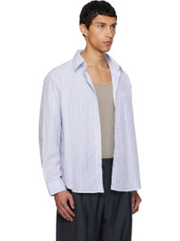 Garment-washed cotton poplin shirt. · Stripes throughout · Spread collar · Button closure · Patch pocket at chest · Shirttail hem · Dropped shoulders · Adjustable buttoned barrel cuffs · Box pleat at back yoke Supplier color: Desk stripe 100% cotton. Made in Portugal 252505M192018