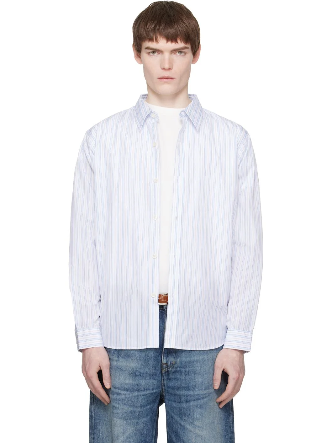 Cotton poplin shirt. · Striped throughout · Spread collar · Button closure · Shirttail hem · Barrel cuffs Supplier color: Off White Business 100% cotton. Made in Portugal 261505M192016