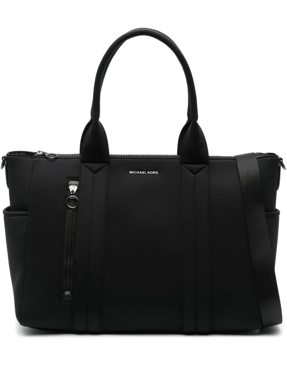 Brooklyn tote bag Highlights - Black - Scuba jersey - Two rolled top handles - Adjustable detachable shoulder strap - Front zip-fastening pocket - Logo plaque - Two side slit pockets - Full lining - Main compartment - Internal slip pockets - Internal zip-fastening pocket - Internal logo patch - Top zip fastening Imported Composition Outer: Nylon 65%, Acetate 24%, Spandex/Elastane 11% SIZE & FIT Measurement DEPTH 8.26 in(21 cm) HANDLE 9.84 in(25 cm) HEIGHT 14.56 in(37 cm) STRAP 58.26 in(148 cm) WIDTH 21.65 in(55 cm)