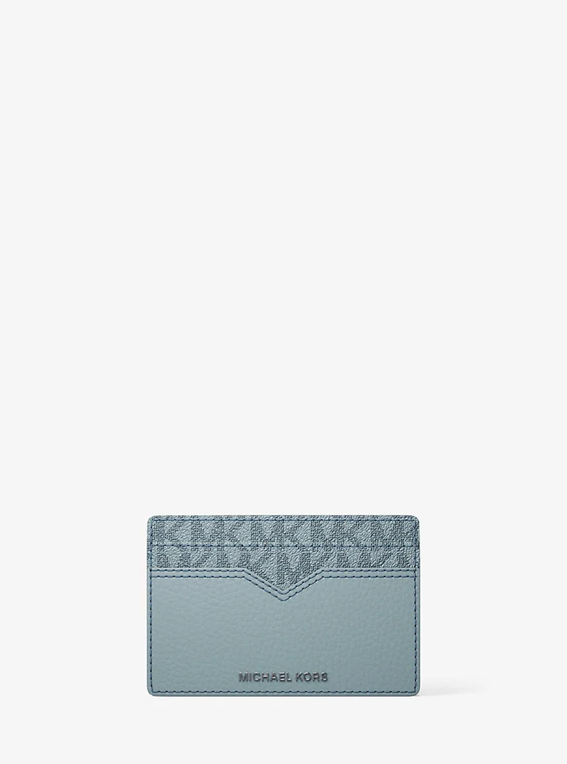 Slim and practical, this card case and money clip combo are a great choice while on the move. It’s made from pebbled leather for durability and fitted with an array of slots to keep your belongings organized. Use the notched slot for easy access to your most used card. - Card case - Pebbled leather - 100% leather - Trim: 89.4% coated canvas/9.6% polyester/1% polyurethane - Gunmetal hardware - 4"W X 2.7"H X 0.5"D - Exterior details: 5 card slots - Lining: 100% polyester - Imported - Style # 39S5LHDD1B