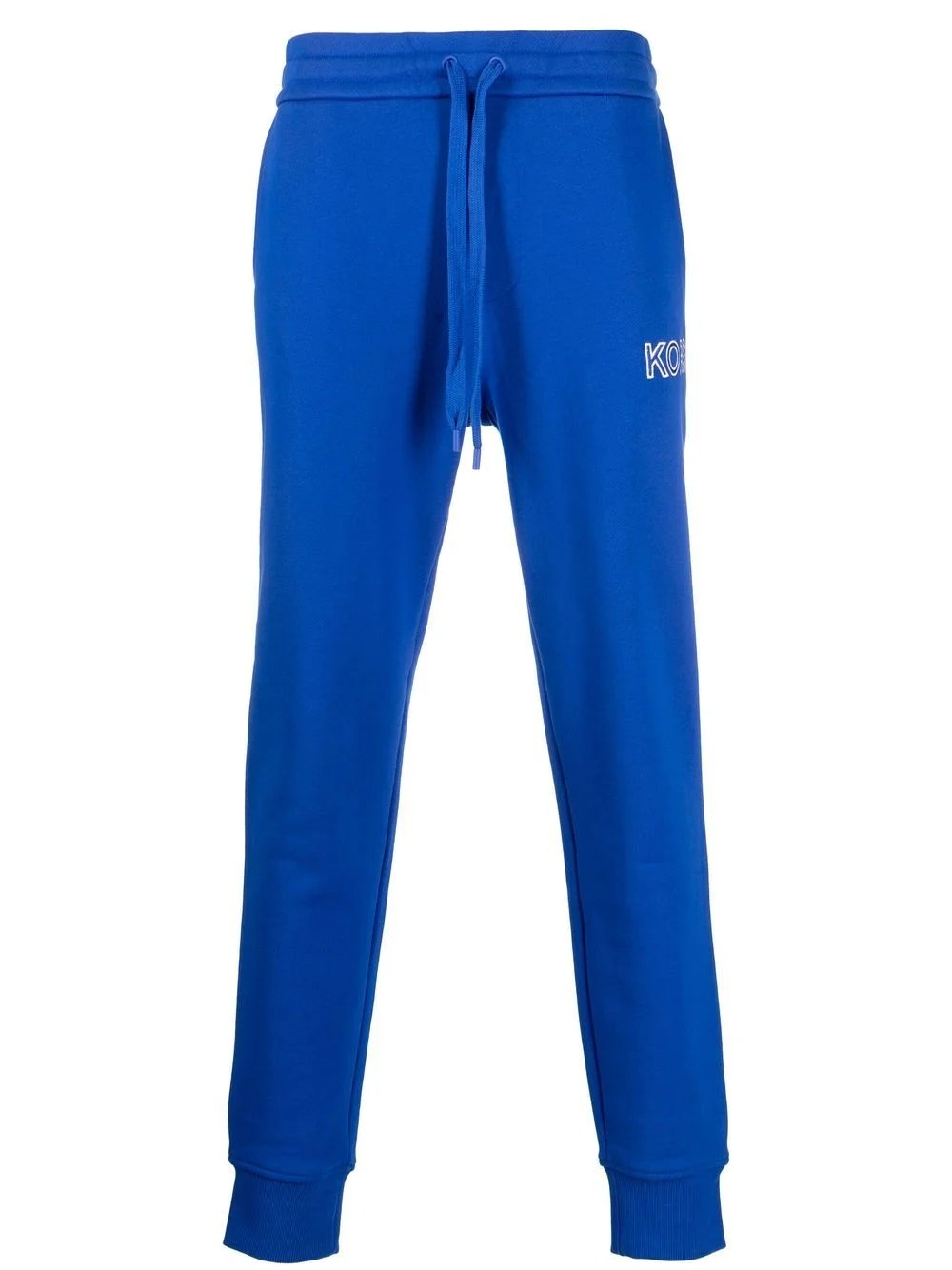 logo-embroidered tapered track pants royal blue cotton white embroidered logo at the leg drawstring fastening waist two side slash pockets rear patch pocket tapered leg ribbed ankles Imported Composition Cotton 100% Washing instructions Machine Wash