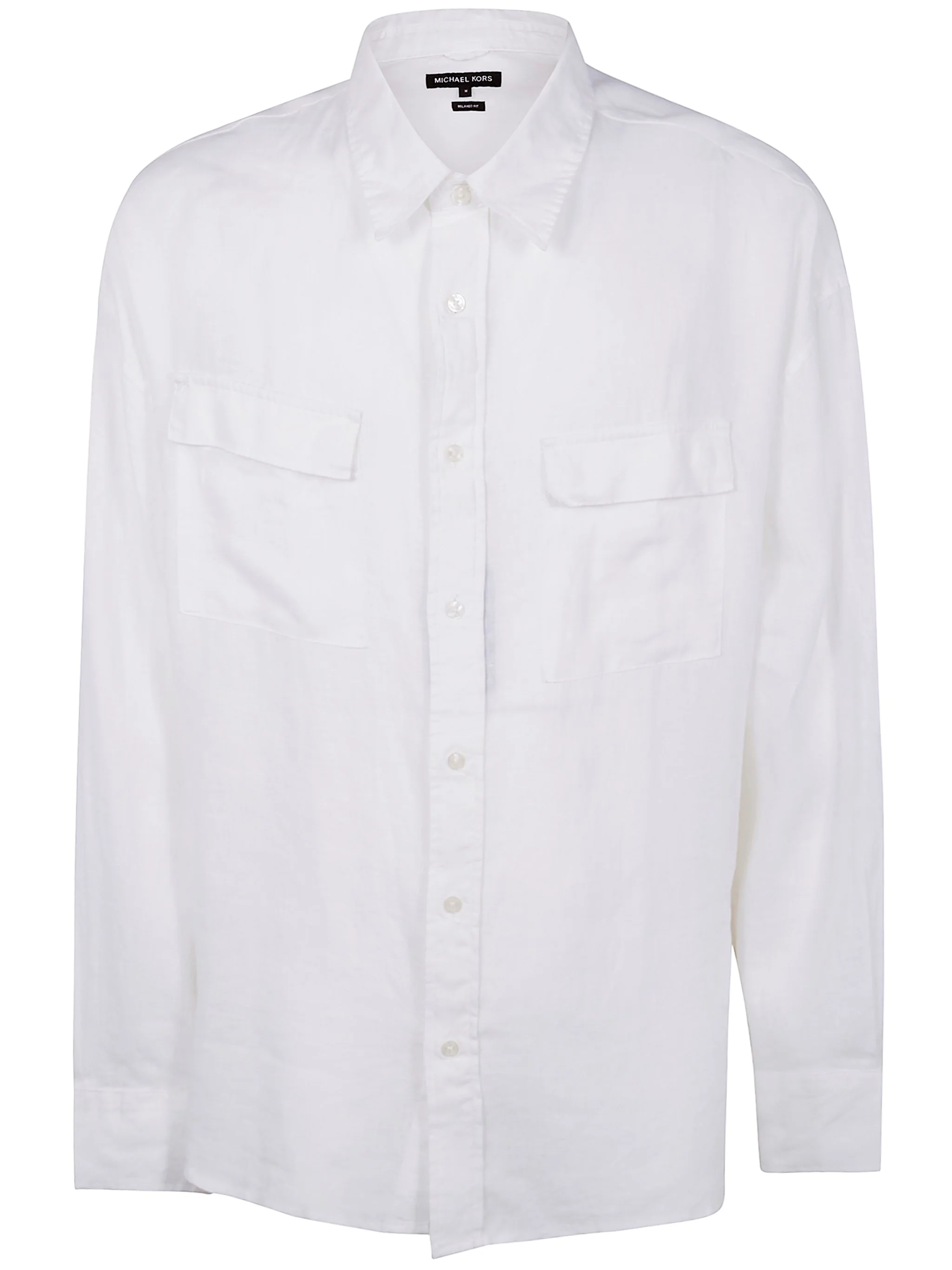 The Long Sleeves Linen 2 Pockets Over Shirt by Michael Kors is an essential piece in the clothing category. Crafted from premium linen, it offers a lightweight and breathable feel, perfect for warm days. The shirt comes in a classic white color, made in India, ensuring quality craftsmanship. With its relaxed fit, it suits various occasions, from casual outings to chic gatherings. Pair it with tailored trousers or denim for a versatile look. This shirt embodies sophisticated simplicity, making it a must-have in your wardrobe for effortless style.. MadeIn: India IN Product code: CS540794YT 100 WHITE