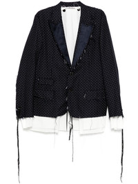 raw edge blazer Highlights - Navy blue - Fringe detailing - Polka dot print - Front button fastening - When buying this unisex item, keep in mind that it is graded in standard men's sizing. Imported Composition Wool 100% SIZE & FIT Model measurements Height 6 ft 2 in(1.87 m) Bust/Chest 33.07 in(84 cm) Hips 35.43 in(90 cm) Waist 26.77 in(68 cm) FittingInformation This unisex piece is designed for a relaxed fit whether you usually select women's or men's sizes Made from a midweight non-stretch fabric
