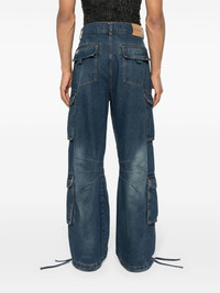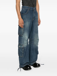 Dirt Bath wide-leg cargo jeans Highlights - Indigo blue - Organic cotton blend - Washed denim - Faded effect - Contrast stitching - Belt loops - Two rounded pockets to the sides - Whiskering effect at the thighs - Multiple cargo pockets - Dart detailing - Full-length - Drawstring hem - Logo patch to the rear - Silver-tone logo plaque to the rear - Two rear flap pockets - Wide leg - Concealed fly and button fastening Imported Composition Cotton 50%, Organic Cotton 50% SIZE & FIT Model measurements Height 6 ft 2 in(1.87 m) Bust/Chest 38.18 in(97 cm) Hips 36.61 in(93 cm) Waist 29.13 in(74 cm) FittingInformation Designed with a wide leg, these jeans offer a loose and roomy fit Sturdy and hard-wearing, this denim piece offers no stretch This piece fits true to size – take your usual size