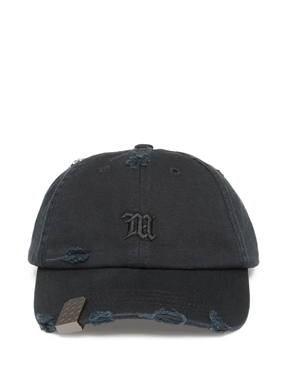 embroidered-logo distressed cap Highlights - Black - Distressed detailing - Embroidered logo - Metal clasp - Curved brim - Six panels Imported Composition Cotton 100%