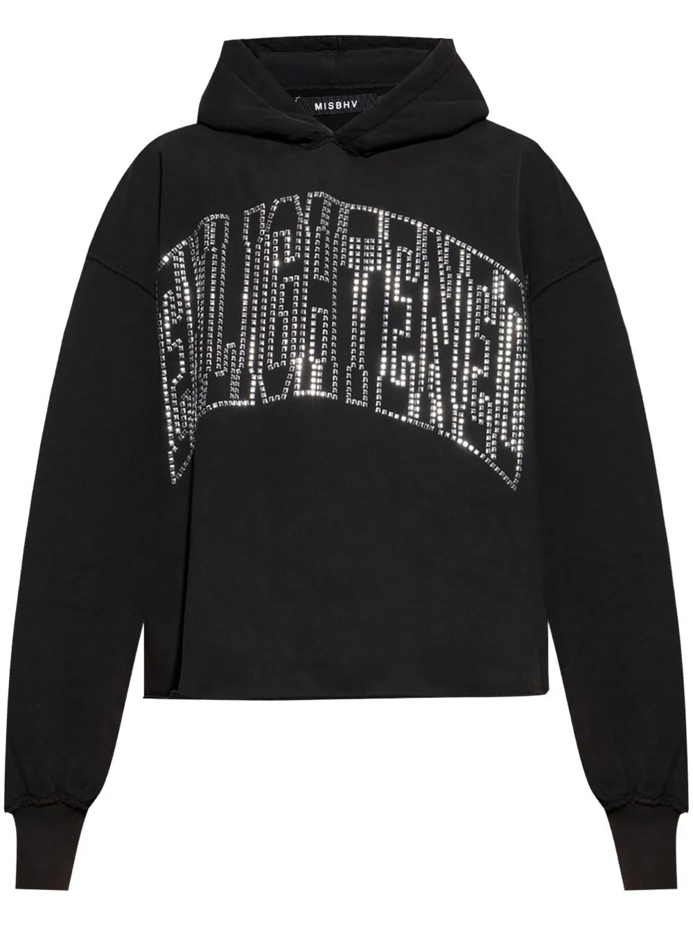 Enlighted cropped hoodie Highlights - Black - Crystal embellishment - Slouchy hood - Long sleeves Imported Composition Cotton 100%