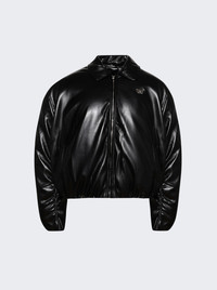 Faux Leather Puffer Bomber Jacket Black