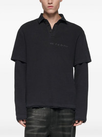 graphic layered long-sleeved polo shirt Highlights - Black - Polo neck - Graphic print featured on a patch at the back - Double-layered - Long sleeves Imported Composition Cotton 100% Washing instructions Read Manufacturer Guidelines