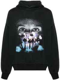 graphic-print hoodie Highlights - Black - Cotton blend - Jersey texture - Faded effect - Graphic print to the front - Classic hood - Embroidered logo at the chest - Drop shoulder - Long sleeves with ribbed cuffs - French terry lining - Ribbed hem Imported Composition Cotton 90%, Polyester 10% SIZE & FIT Model measurements Height 6 ft 1 in(1.85 m) Bust/Chest 36.22 in(92 cm) Hips 36.22 in(92 cm) Waist 27.55 in(70 cm) FittingInformation Designed to be unstructured, offering a loose fit throughout Made from a midweight non-stretch fabric, this piece offers minimal elasticity when worn This piece fits true to size – take your usual size