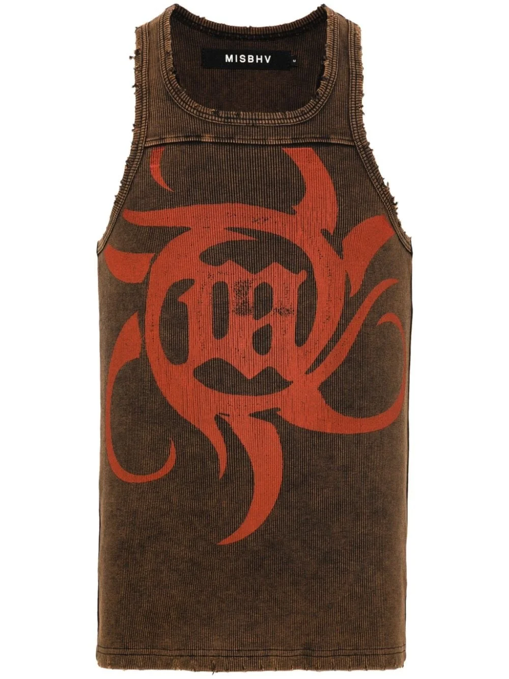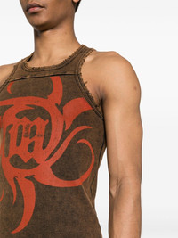 graphic-print top Highlights - Medium brown - Stretch-cotton - Fine ribbed - Washed effect - Distressed effect - Graphic print to the front - Round neck - Sleeveless - Straight hem Imported Composition Cotton 98%, Spandex/Elastane 2% SIZE & FIT Model measurements Height 6 ft 2 in(1.87 m) Bust/Chest 36.22 in(92 cm) Hips 37 in(94 cm) Waist 27.95 in(71 cm) FittingInformation Designed for a close fit throughout Made from a midweight stretch fabric, this piece offers elasticity and flexibility when worn This piece fits true to size – take your usual size Washing instructions Machine Wash