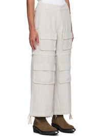 Stretch linen twill cargo pants. Raw edges throughout. · Belt loops at partially elasticized waistband · Four-pocket styling · Zip-fly · Bellows pockets at front · Drawstring at cuffs Supplier color: Off white 96% linen, 4% polyurethane. Made in Poland 241937M188003