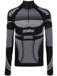 high-collar fitted top Highlights - Black/white - Recycled polyamide - Logo print to the front - Panelled design - Half front zip fastening - High neck - Long sleeves - Straight hem Imported Composition Recycled Polyamide 55%, Polyester 40%, Spandex/Elastane 5% SIZE & FIT Model measurements Height 6 ft 1 in(1.85 m) Bust/Chest 35.82 in(91 cm) Hips 37.79 in(96 cm) Waist 29.13 in(74 cm) FittingInformation This piece fits true to size. We recommend you get your regular size Cut for a close fit Made with a mid-weight stretch fabric Washing instructions Machine Wash