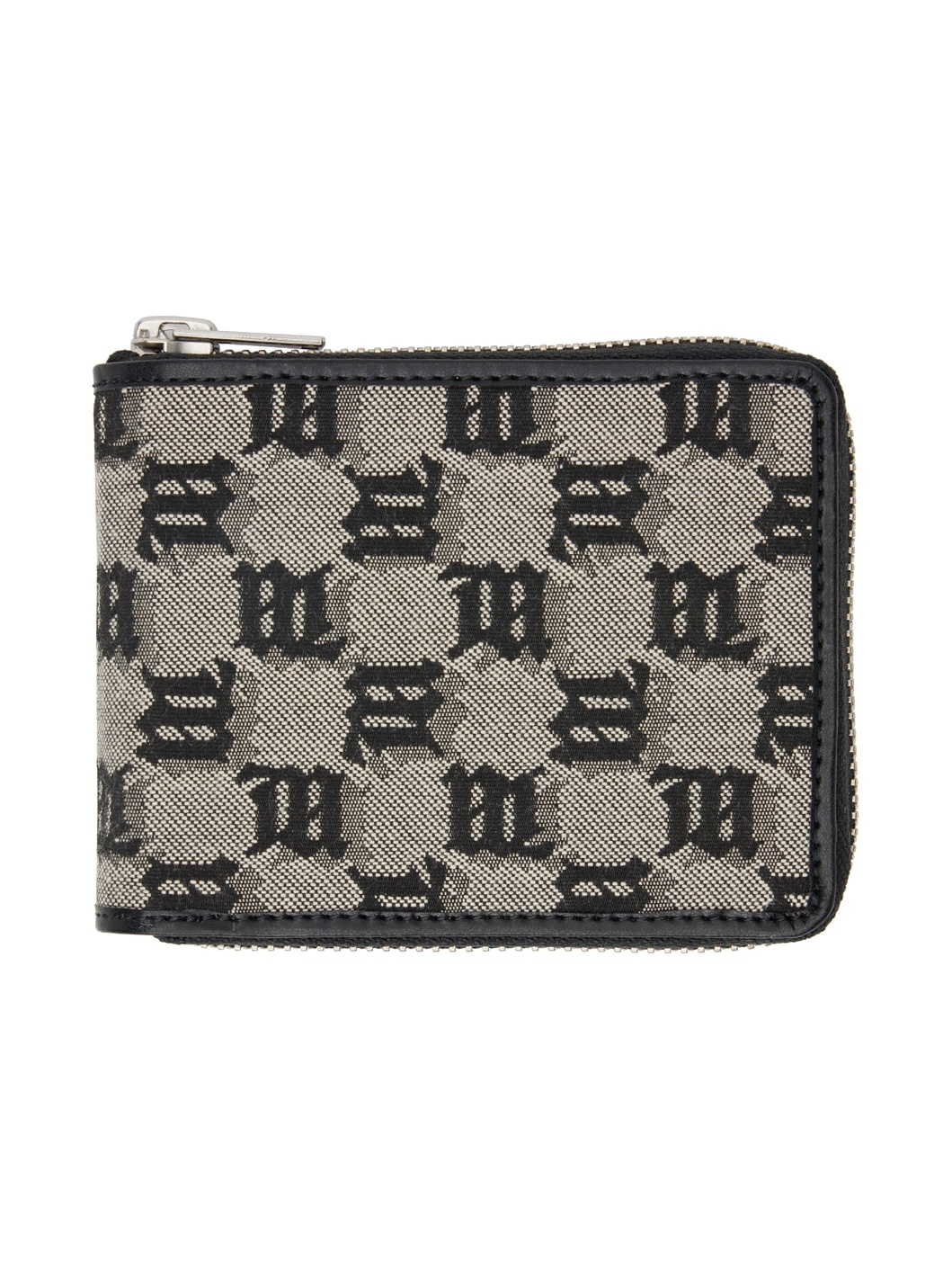 Canvas wallet in black and white. Jacquard logo pattern throughout. · Zip closure · Three card slots · One patch pocket · Coin pouch · One note slot · Logo-woven twill lining · H3.5 x W4.25 in Supplier color: Black
