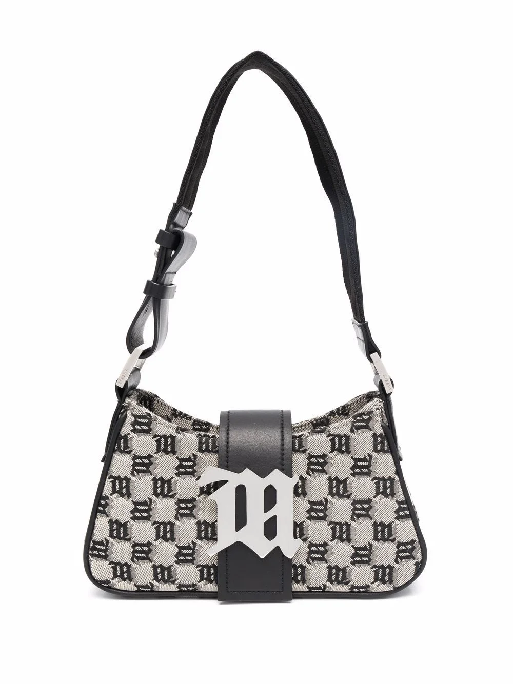logo-plaque woven shoulder bag black/grey silver-tone logo plaque front buckle fastening interwoven design adjustable detachable shoulder strap Imported Composition Outer: Polyester 100% SIZE & FIT Model measurements Height 6 ft 1 in(1.85 m) Bust/Chest 38.58 in(98 cm) Hips 37 in(94 cm) Waist 30.31 in(77 cm) Measurement DEPTH 3.14 in(8 cm) HANDLE 9.84 in(25 cm) HEIGHT 5.9 in(15 cm) WIDTH 9.44 in(24 cm)