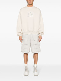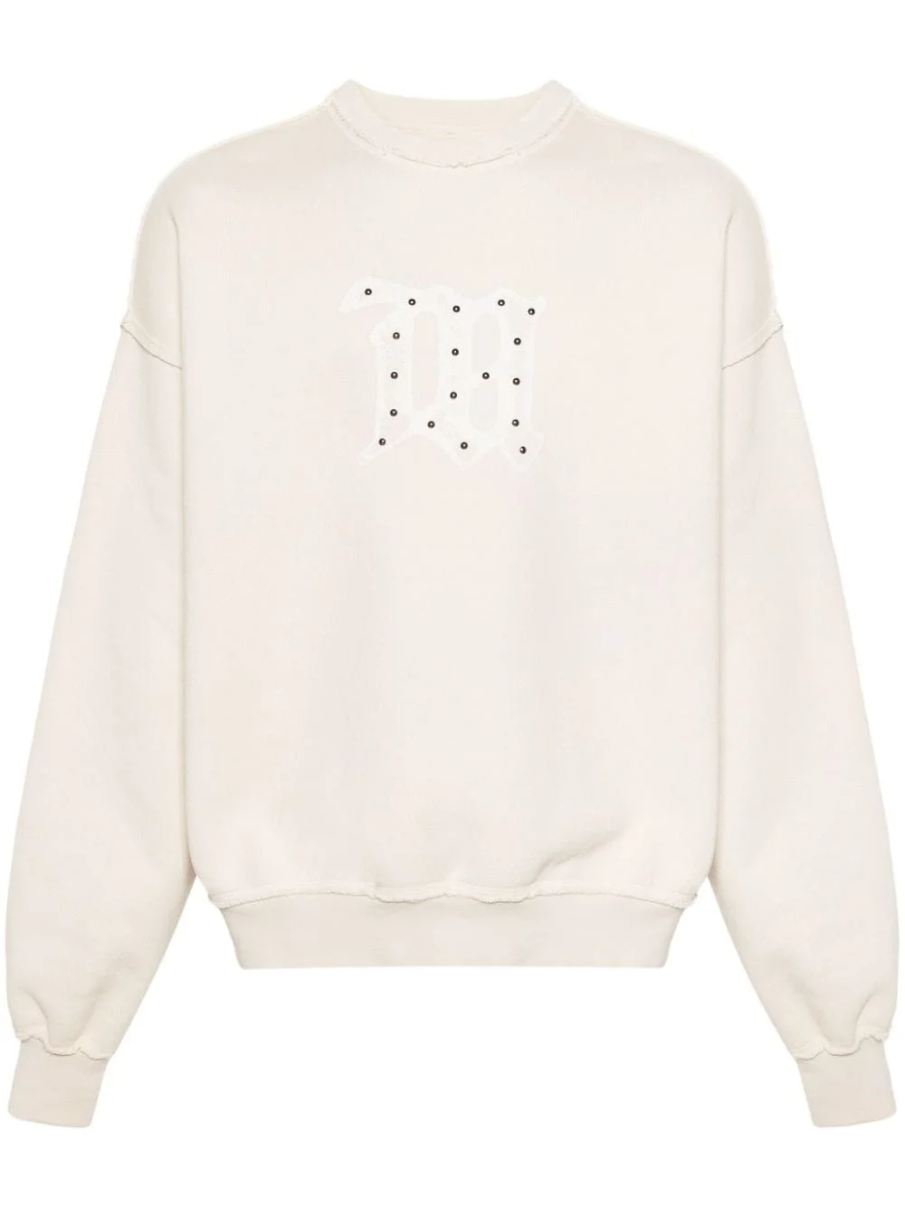logo-print cotton sweatshirt Highlights - Light beige - Cotton - Jersey texture - Inside-out effect seams - Logo print to the front - Silver-tone stud detailing - Crew neck - Drop shoulder - Long sleeves - Ribbed cuffs and hem - Fleece lining Imported Composition Cotton 100% SIZE & FIT Model measurements Height 6 ft 2 in(1.89 m) Bust/Chest 37.79 in(96 cm) Hips 37 in(94 cm) Waist 29.92 in(76 cm) FittingInformation Designed to be unstructured, offering a loose fit throughout Made from a midweight non-stretch fabric, this piece offers minimal elasticity when worn This piece fits true to size – take your usual size Washing instructions Machine Wash