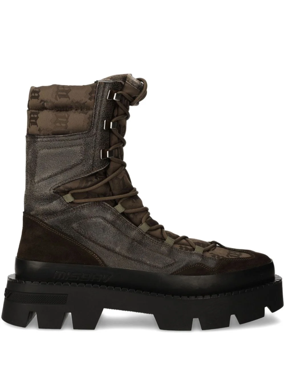 logo-print lace-up boots Highlights - Brown - Logo print - Lace-up fastening - Padded detail - Platform sole Imported Composition Outer: Suede 100%, Leather 100%, Fabric 100% Lining: Leather 100% Sole: Rubber 100%
