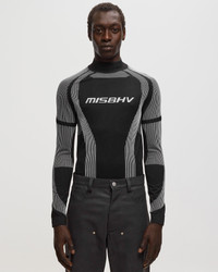 The MISBHV long sleeve top is crafted in fitted, breathable, sustainable engineered knitwear. It features a logo on the front. Due to the specificity of the yarn used, the product may show heterogeneous dyeing color. Article number: 4021M500 Gender: men Color: BLACK/WHITE Material: 55% Polyamide, 40% Polyester, 5% Spandex/elastane