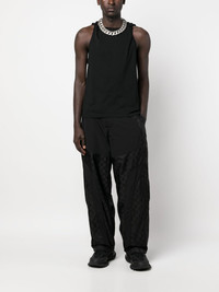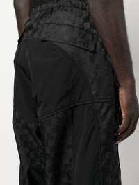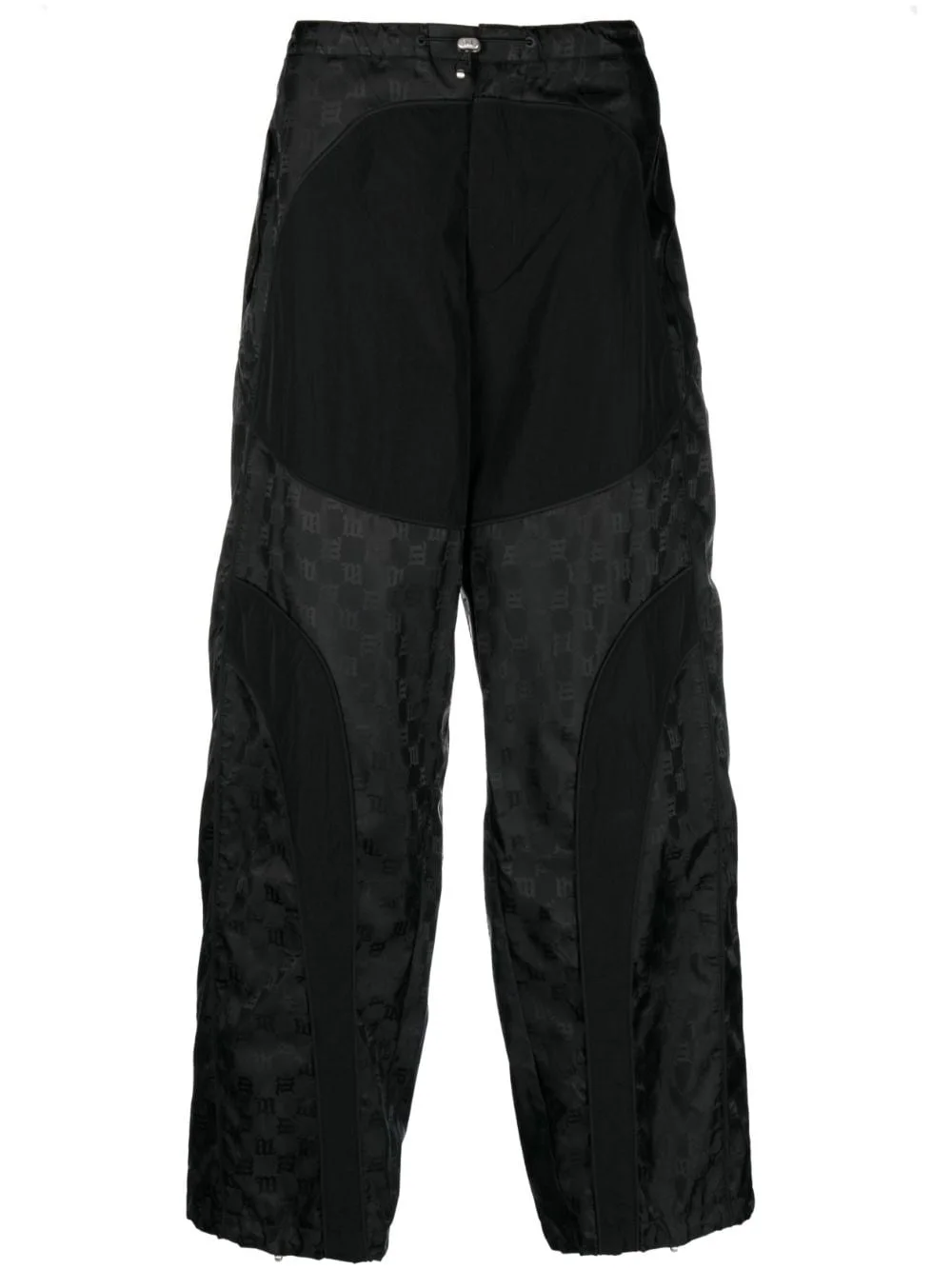 monogram-jacquard wide-leg trousers Highlights - Black - Monogram jacquard - Drawstring fastening waist - Panelled design - Two side flap pockets - Two rear flap pockets - Wide leg - Elasticated toggle detailing Imported Composition Outer: Polyester 60%, Polyamide 40% Lining: Polyester 100% SIZE & FIT Model measurements Height 6 ft 2 in(1.87 m) Bust/Chest 36.41 in(92.5 cm) Hips 37 in(94 cm) Waist 29.52 in(75 cm) FittingInformation Designed with a wide leg, offering a loose and roomy fit The internal drawstring at the hem allows for fitted preferences at the ankle Made from a lightweight non-stretch fabric This piece fits true to size – take your usual size Washing instructions Dry Clean Only