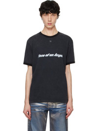 Heavyweight cotton jersey T-shirt. Fading throughout. · Rib-knit crewneck and cuffs · Embroidered logo at chest · Printed text and crystal-cut accents at front and back Supplier color: Washed black