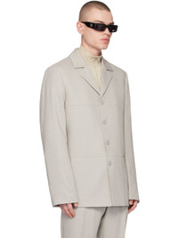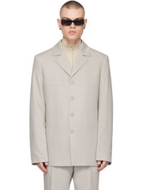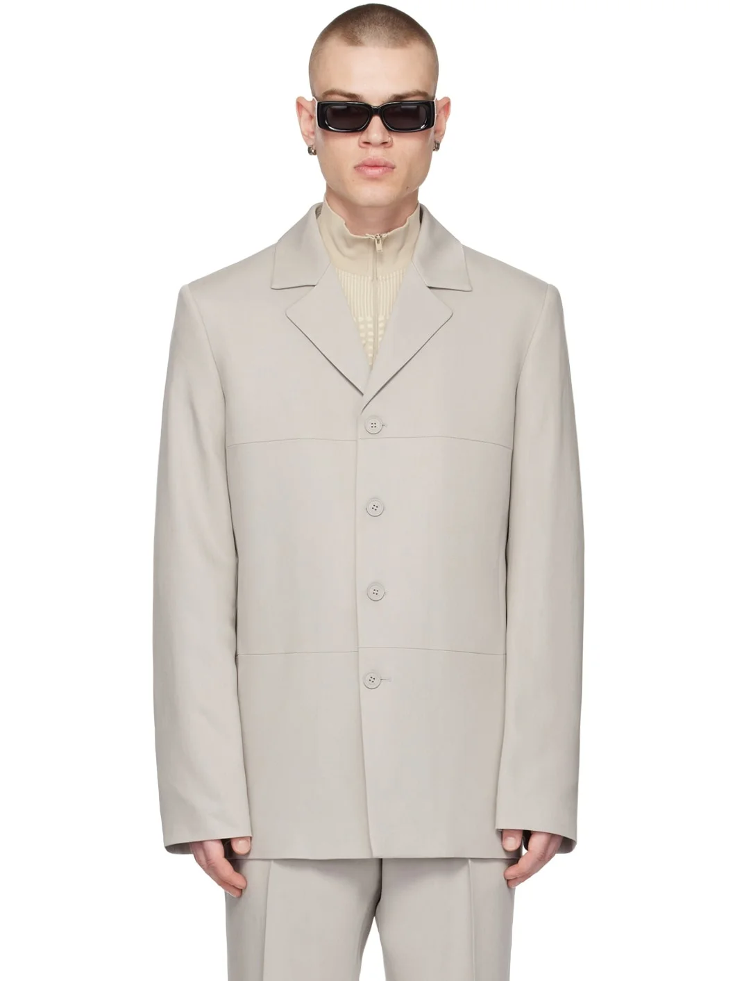 Lyocell twill blazer. · Notched lapel · Button closure · Flap pockets · Padded shoulders · Welt pockets at interior · Full viscose satin lining · Logo-engraved tonal hardware Supplier color: Taupe Body: 100% lyocell. Lining: 100% viscose. Made in Poland 231937M195002
