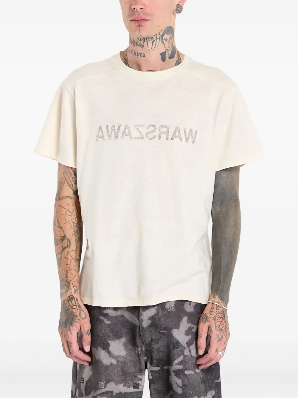 warszawa cold wave T-shirt Highlights - Beige - Short sleeves - Crew neck - Graphic print - Reverse lettering Imported Composition Cotton 55%, Hemp 45% Washing instructions Read Manufacturer Guidelines