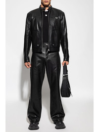 zipped leather jacket Highlights - Black - Leather - Zip fastening - Mock neck - Long sleeves - Logo plaque - Two side patch pockets - Fitted-cuff sleeves - Straight hem Imported Composition Polyester 55%, Polyurethane 45%