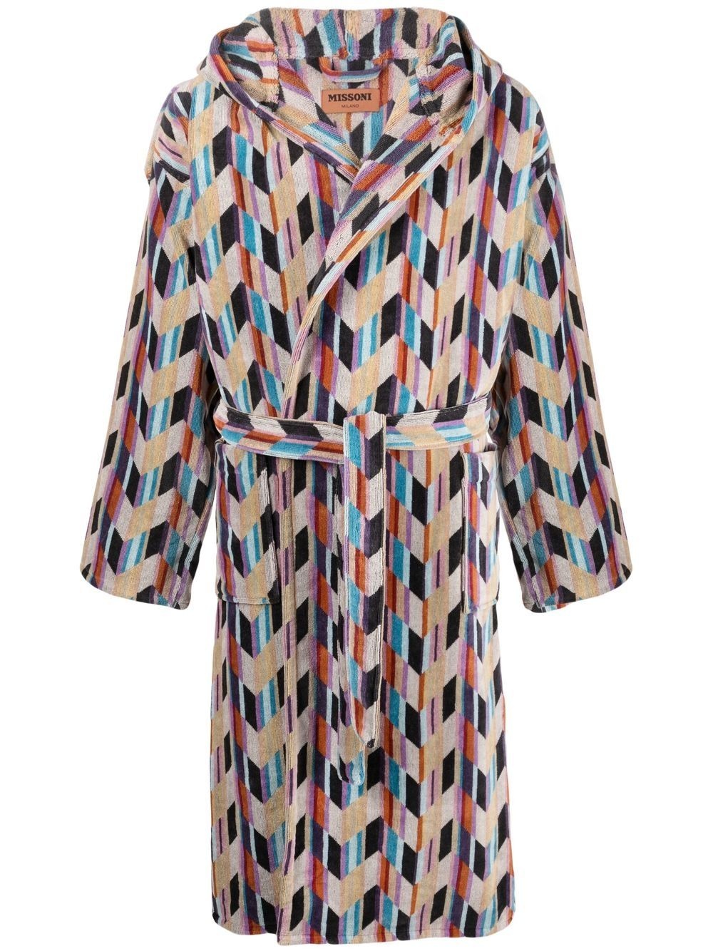 all-over graphic-print bathrobe Highlights - Multicolour - Cotton - All-over graphic print - Tied waist - Classic hood - Long sleeves - Mid-length - The item you receive may differ slightly from the item photographed. this is due to the artisanal nature in which all missoni products are constructed. - When buying this unisex item, keep in mind that it is graded in standard men's sizing. Imported Composition Cotton 100% Washing instructions Machine Wash