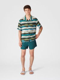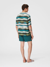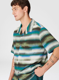 Subtle and sophisticated, the gradient micro zigzag print of this bowling shirt reveals impeccable attention to detail. The refined pattern, together with the discreet breast pocket, makes this garment perfect for those who love a relaxed style but with attention to detail. MORE DETAILS - Swim shorts - Iconic degrade macro zigzag motif Composition: EXTERNAL:100%Rayon Care instructions: Dry cleaning in tetrachloroethene - mild process ; Ironing maximum temperature 110°C - without steam ; Iron inside out ; Do not tumble dry ; Do not wash ; Do not bleach Made in: Tunisia Product ID US25SJ0BBW00W6SM9LT