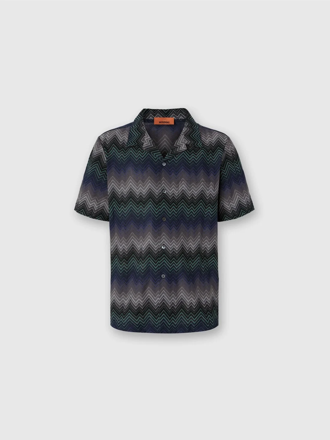 This men’s short-sleeve bowling shirt, made in a cotton blend, is characterized by Missoni’s signature irregular zigzag. Featuring a front pocket and contrasting buttons, it combines the brand’s distinctive design with a modern and versatile silhouette, perfect for adding a touch of elegance to any look. MORE DETAILS - Bowling shirt short sleeve - Irregular zigzag pattern - Cotton blend Composition: EXTERNAL:77%Cotton, 23%Polyester Care instructions: Hand wash ; Dry cleaning in tetrachloroethene - mild process ; Do not tumble dry ; Steam iron only ; COOL HAND WASH ; Do not iron ; Do not bleach Made in: Italy Product ID US25WJ04BR012XS91P2