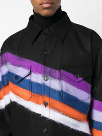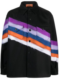 brushed-effect striped shirt jacket Highlights - Black/multicolour - Virgin wool blend/mohair - Brushed effect - Diagonal stripe pattern - Buttoned-cuff sleeves - Classic collar - Front button fastening - Long sleeves - Two chest flap pockets - Straight hem - The item you receive may differ slightly from the item photographed. this is due to the artisanal nature with which all missoni products are constructed. Made in Italy Composition Mohair 100%, Virgin Wool 80%, Polyamide 20% SIZE & FIT Model measurements Height 6 ft 1 in(1.85 m) Bust/Chest 38.58 in(98 cm) Hips 37 in(94 cm) Waist 30.31 in(77 cm) FittingInformation Designed to be unstructured, offering a loose fit throughout Made from a midweight non-stretch fabric This piece fits true to size – take your usual size