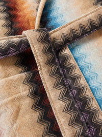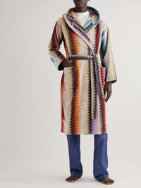 Missoni Home's 'Byron' robe is made from soft cotton-terry patterned with the signature zigzag motif, first introduced in 1966. It's cut for a relaxed fit and has a roomy hood and pair of large patch pockets deep enough for your phone and a magazine. Use the matching belt to keep the open front securely closed. Size & Fit - Fits true to size - This robe is designed for a relaxed fit; use the belt to secure at the waist - Model is a S but wears a M to achieve a looser fit - Model measures: chest 36"/ 92cm, height 6'2"/ 188cm Details & Care - Multicoloured cotton-terry jacquard - 100% cotton - Machine wash