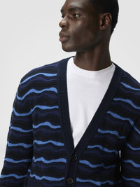 With sophisticated taste and artisanal soul, this men’s button-up cardigan in 100% wool is enriched by wave-stitch workmanship that gives the piece texture and movement. A refined and enveloping design, perfect for adding a distinctive touch to the everyday wardrobe. MORE DETAILS - Cardigan with buttons - Wave stitch - 100% wool Composition: EXTERNAL:100%Wool Care instructions: Hand wash ; Ironing maximum temperature 110°C - without steam ; Dry cleaning in tetrachloroethene ; Dry flat ; Do not tumble dry ; Do not bleach Made in: Italy Product ID US25WM0LBK01DBS72ML