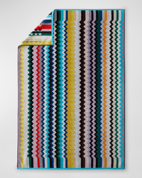 Bath sheet features a striped multicolor chevron pattern Crafted of cotton Approx. 59"L x 39"W Dry clean, professional cleaning recommended Made in Portugal