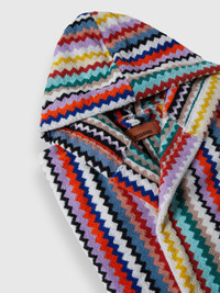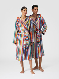 The Riverbero bathrobe embodies the distinctive elegance and comfort of MissoniHome. Made of soft cotton terry, it features the inimitable zigzag pattern that catches the eye and adds a touch of liveliness to everyday life. Complete with waist belt, hood and patch pockets, the model offers not only practicality, but also an iconic style that conveys the brand's unique essence. MORE DETAILS - Cotton terry bathrobe - Zigzag pattern - Waist belt - Hood - Patch pockets Composition: EXTERNAL:100%Cotton Care instructions: Ironing maximum temperature 150°C ; Do not dry clean ; Tumble drying at lower temperature ; Wash max 40°C ; Do not bleach Made in: Portugal Product ID 1D3AC99704100