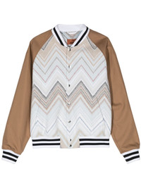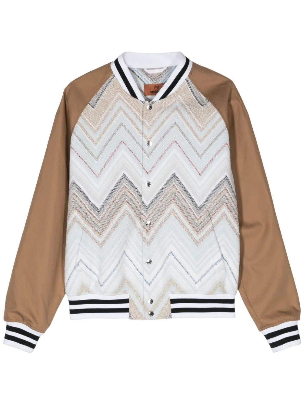 chevron-jacquard towelly bomber jacket Highlights - Almond beige/multicolour - Cotton blend - Towelling finish - Short pile design - Chevron knit - Baseball collar - Front press-stud fastening - Long raglan sleeves - Ribbed cuffs and hem - Logo-jacquard lining - The item you receive may differ slightly from the item photographed. this is due to the artisanal nature with which all missoni products are constructed. Made in Italy Composition Outer: Cotton 89%, Polyamide 11% Lining: Viscose 100%