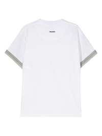 chevron knit-detailed cotton T-shirt Highlights - White - Cotton - Lightweight jersey - Logo print to the rear - Crew neck - Short sleeves - Turn-up cuffs - Chevron knit - Straight hem - The item you receive may differ slightly from the item photographed. this is due to the artisanal nature with which all missoni products are constructed. Imported Composition Cotton 100% Washing instructions Machine Wash