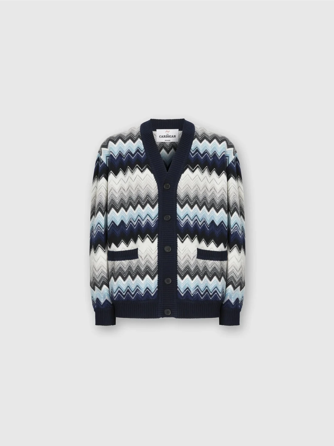 With artisanal charm and unmistakable identity, this men’s knit cardigan is loom-crafted in a soft wool and cotton blend. The slubbed zigzag motif, typical of Missoni, gives depth and movement to the texture, while the contrasting trims add a graphic accent that completes the design with balance and character. MORE DETAILS - Cardigan with buttons - Zigzag with contrast trims - Woven knit - Cotton and alpaca blend Composition: EXTERNAL:83%Wool, 17%Cotton Care instructions: Hand wash ; Ironing maximum temperature 110°C - without steam ; Dry cleaning in tetrachloroethene - mild process ; Do not tumble dry ; COOL HAND WASH ; Do not bleach Made in: Italy Product ID US25WM0HBC005AS72L9