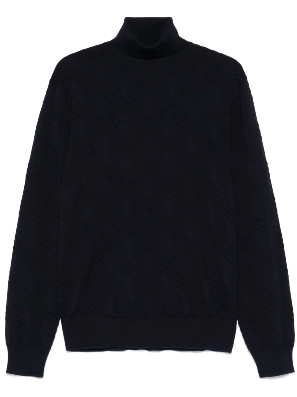turtleneck chevron sweater Highlights - Midnight blue - Wool blend - Chevron knit - Roll neck - Long sleeves - Ribbed cuffs and hem - The item you receive may differ slightly from the item photographed. this is due to the artisanal nature with which all missoni products are constructed. Imported Composition Wool 95%, Viscose 5% SIZE & FIT Model measurements Height 6 ft 2 in(1.87 m) Bust/Chest 37.79 in(96 cm) Hips 37.79 in(96 cm) Waist 30.31 in(77 cm) FittingInformation Designed for a relaxed fit, this piece allows for comfort and movement when worn The ribbed hem offers a close, comfortable fit Made with a midweight knit, this piece offers some stretch