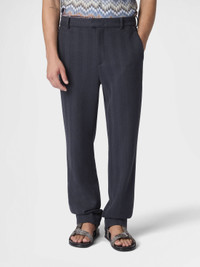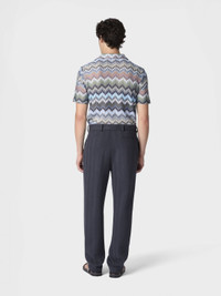 The classic cut enhances the elegant line of these men’s trousers in cotton and viscose, characterized by a refined tone-on-tone zigzag pattern created through raschel workmanship. Belt loops, concealed fastening, side pockets, and a pressed front crease complete the design, highlighting its sophisticated simplicity. MORE DETAILS - Men’s classic trousers - Raschel knit - Tone-on-tone zigzag pattern - Cotton and viscose blend Composition: EXTERNAL:75%Cotton, 25%Rayon; INTERNAL:100%Polyester Care instructions: Dry cleaning in tetrachloroethene - mild process ; Ironing maximum temperature 110°C - without steam ; Do not tumble dry ; Dry flat ; Do not wash ; Do not bleach Made in: Italy Product ID UC25WI00BR012294015