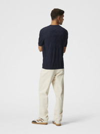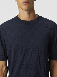 Cotton and silk knit crewneck T-shirt with 3D chevron