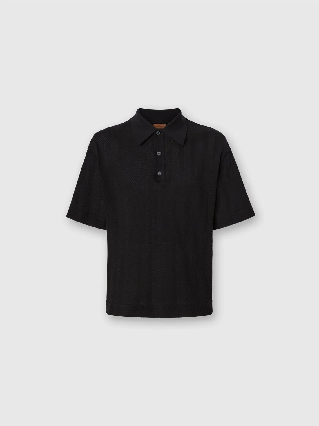 Cotton and viscose polo shirt with tone-on-tone zigzag