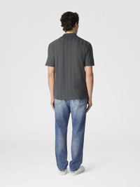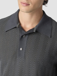 Cotton and viscose polo shirt with tone-on-tone zigzag