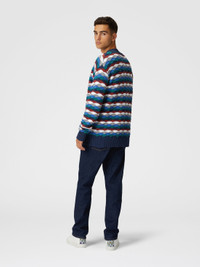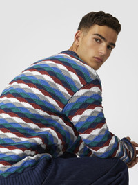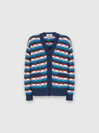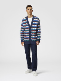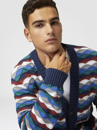 A garment that recalls the energy of the sea thanks to the wavy pattern that runs through the knit. The contrasting piping creates a refined play of colour, adding a touch of character to a cardigan that combines modernity and tradition. MORE DETAILS - V-neck pullover - Cashmere knitting - Iconic tonal zig zag pattern Composition: EXTERNAL:58%Cotton, 42%Polyamide Care instructions: Hand wash ; Ironing maximum temperature 110°C - without steam ; Dry cleaning in tetrachloroethene ; Do not tumble dry ; Dry flat ; Do not bleach Made in: Italy Product ID US25SM0BBK045ISM9M5